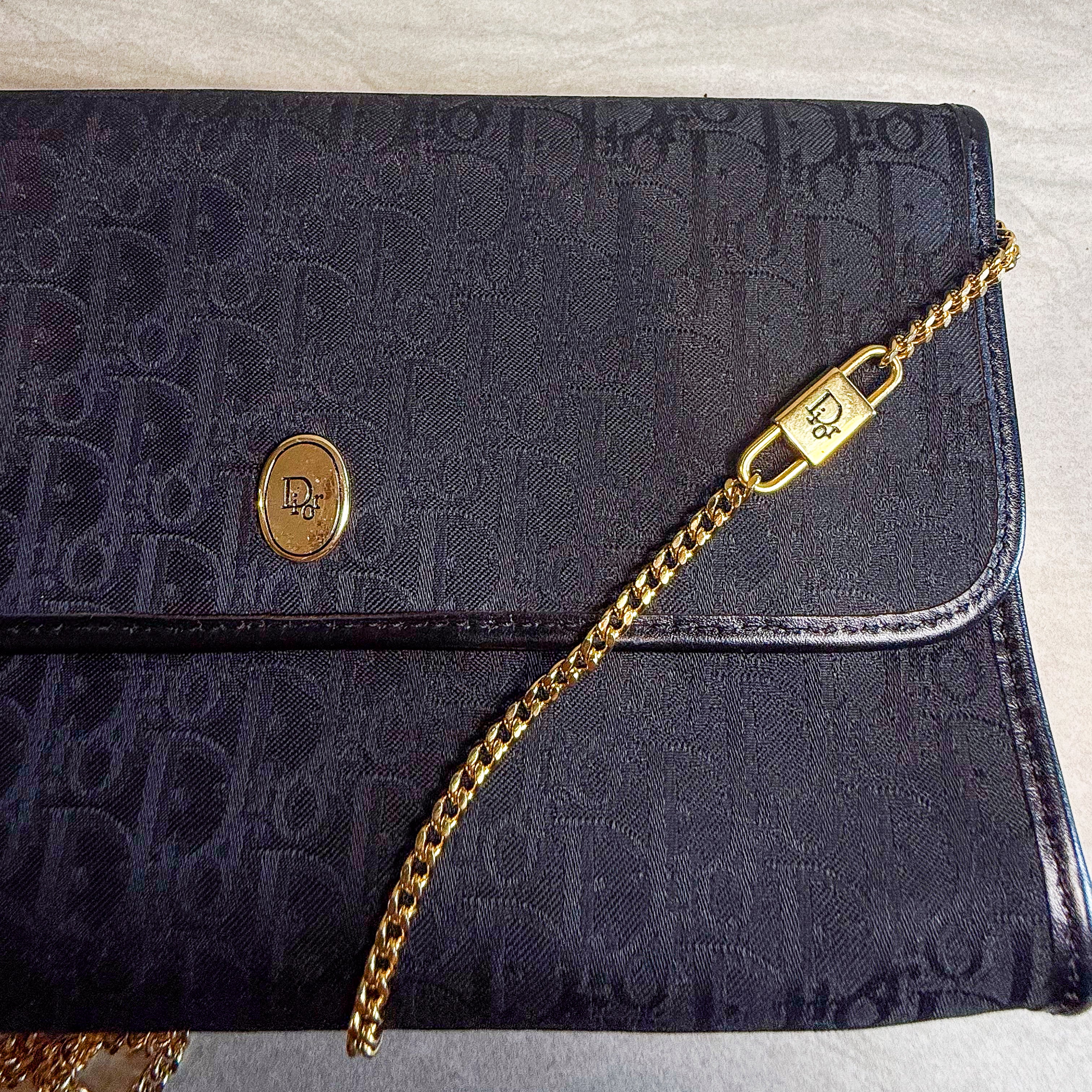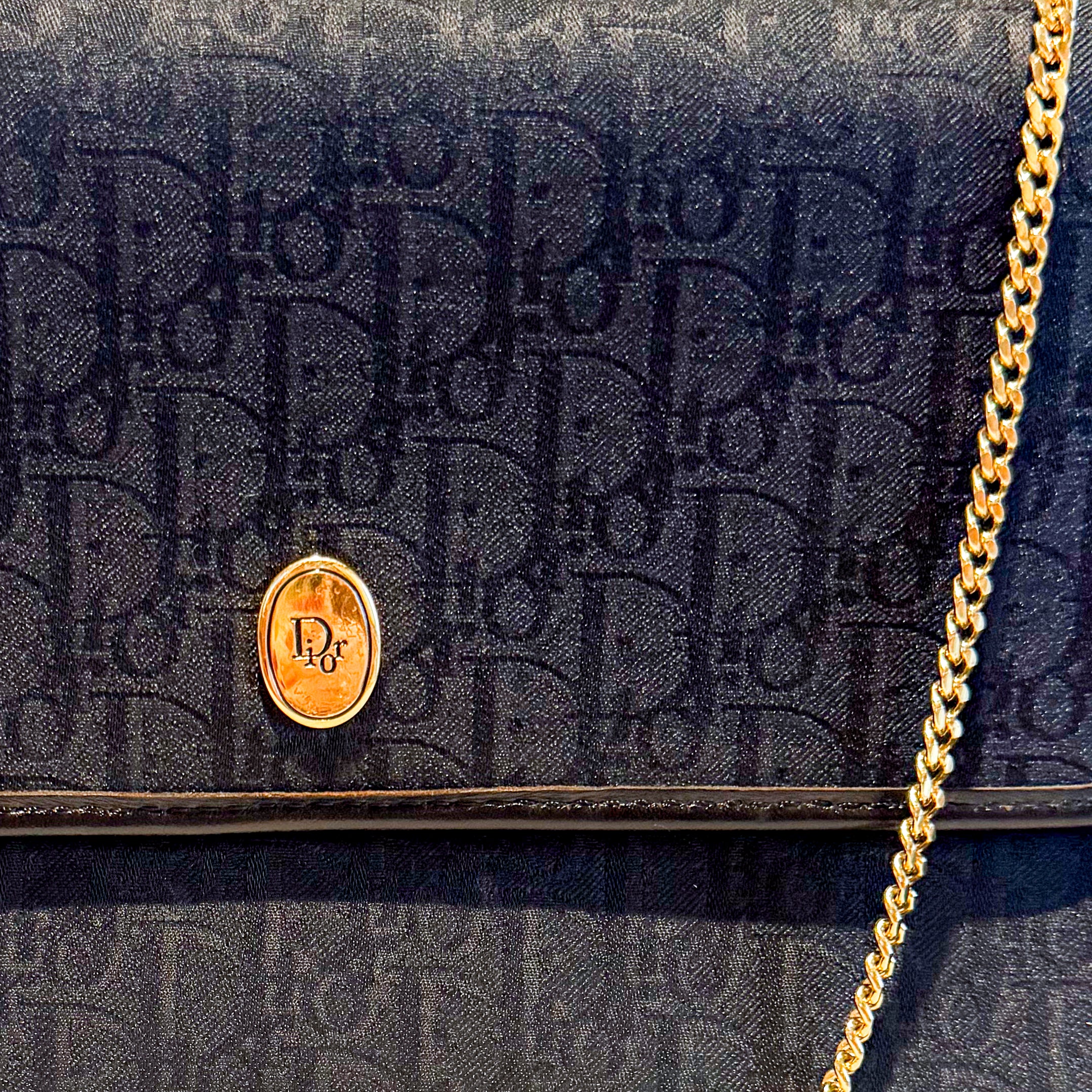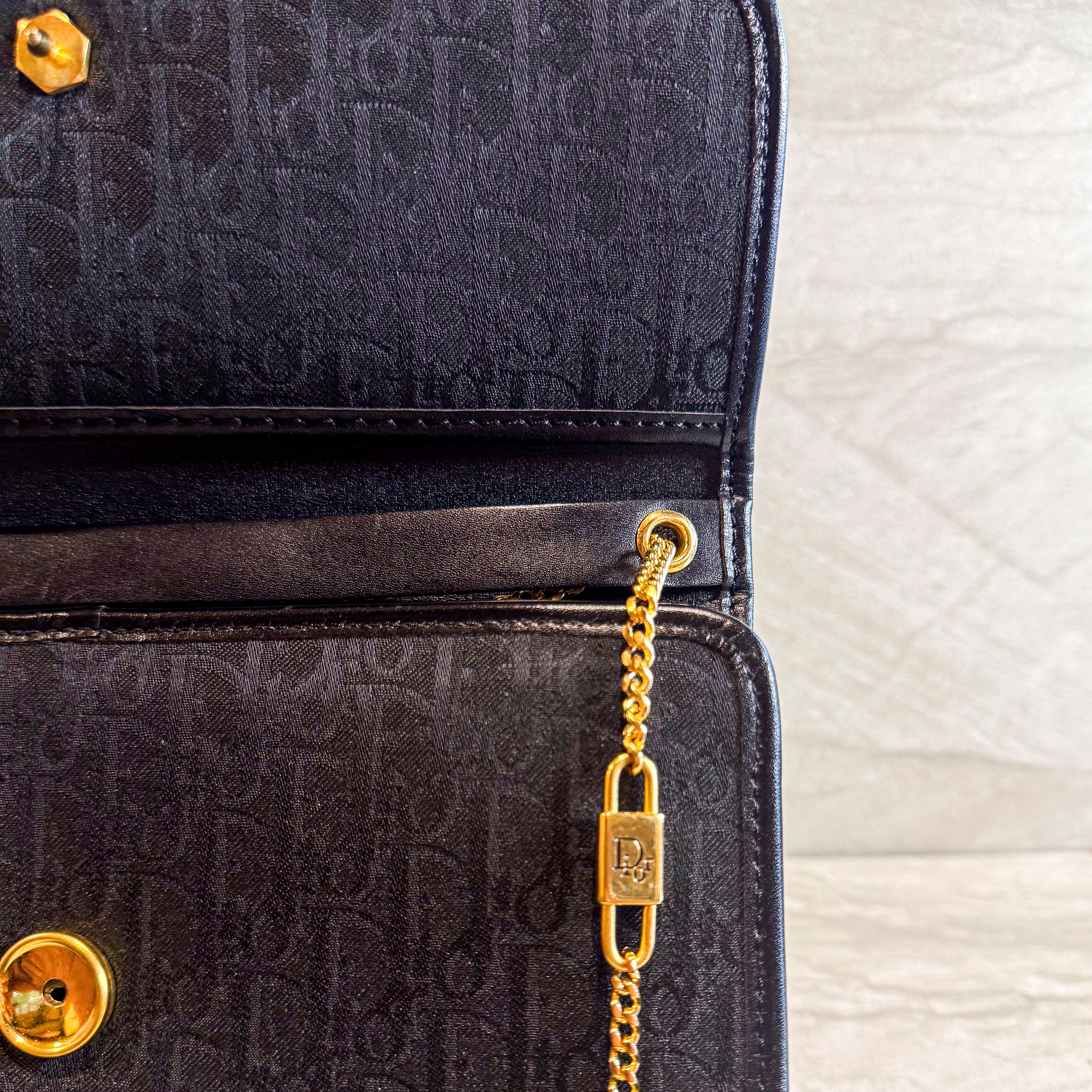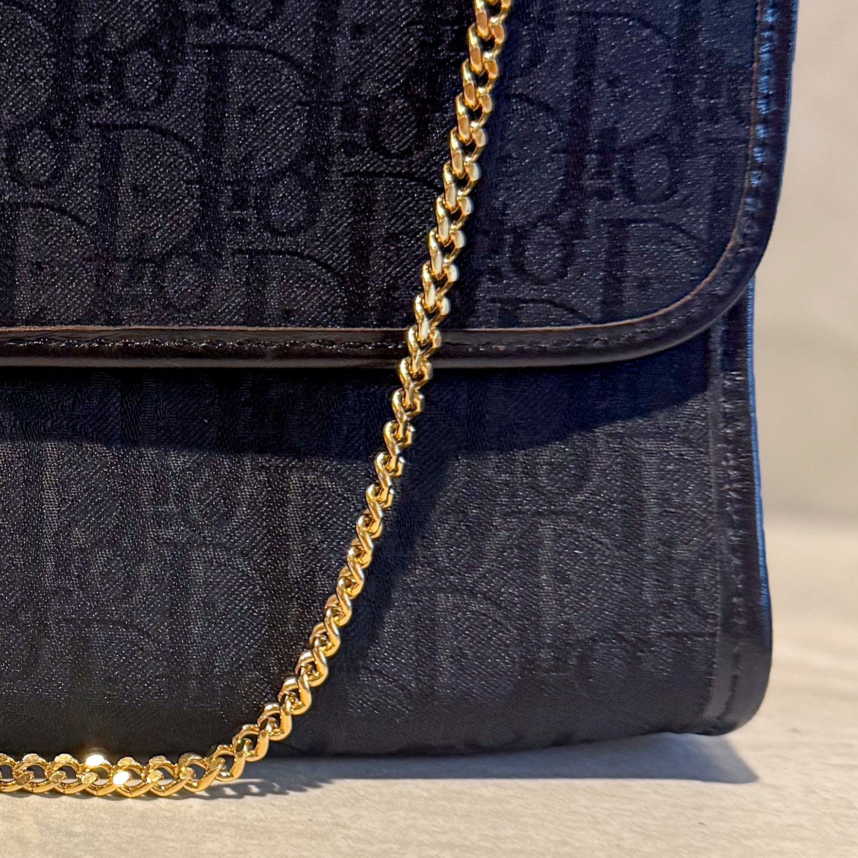 Vintage Christian Dior shoulder bag in the iconic Oblique canvas with gold chain strap detail.