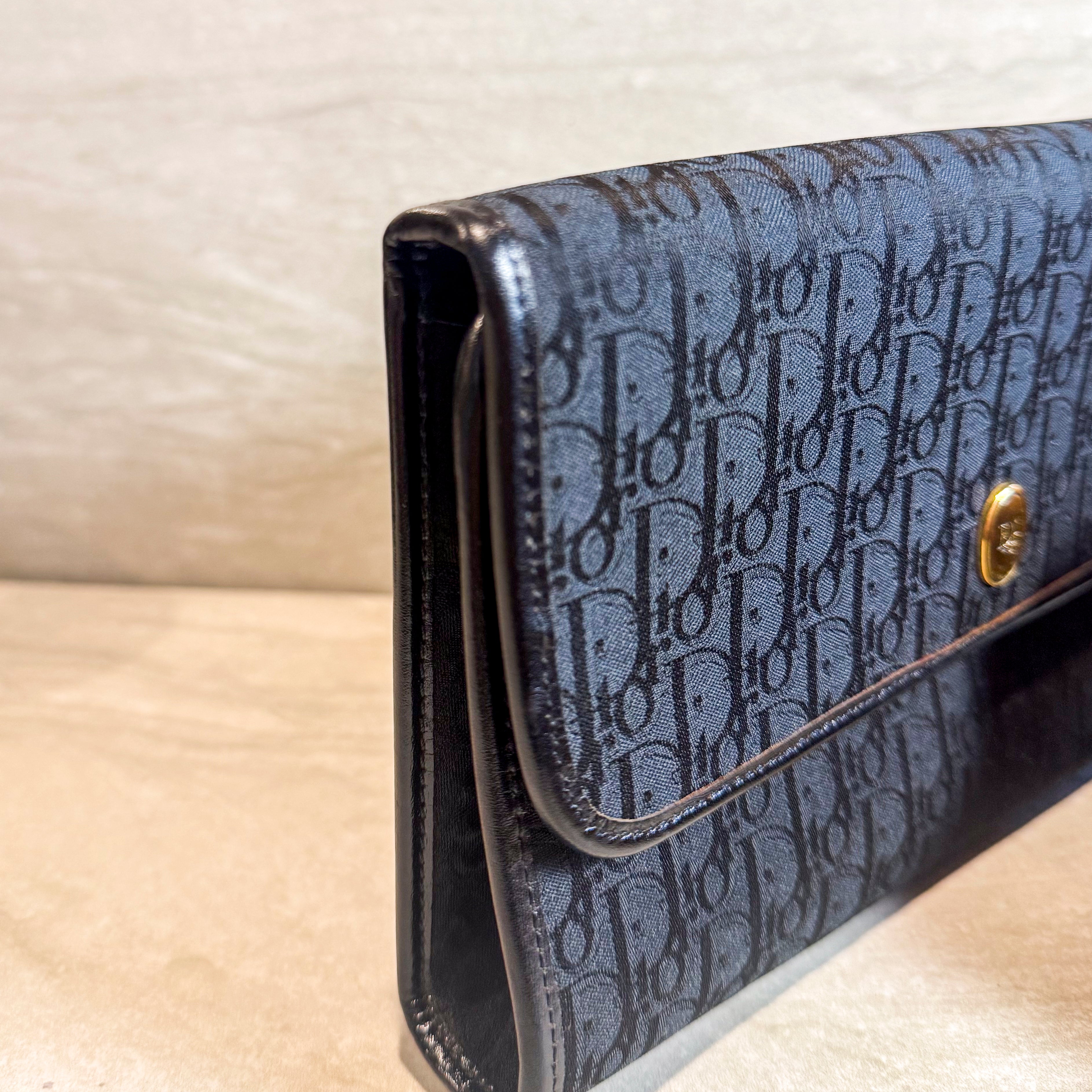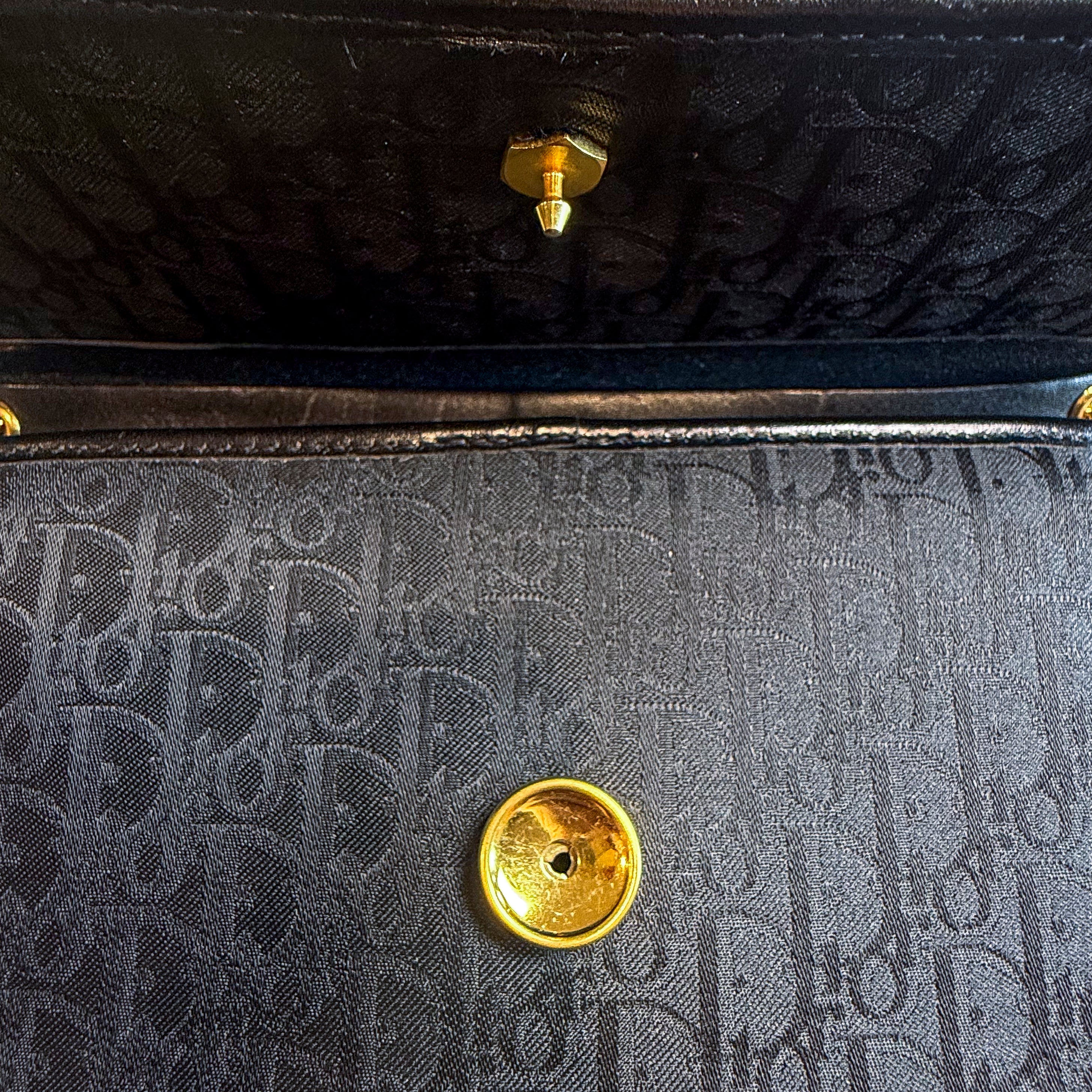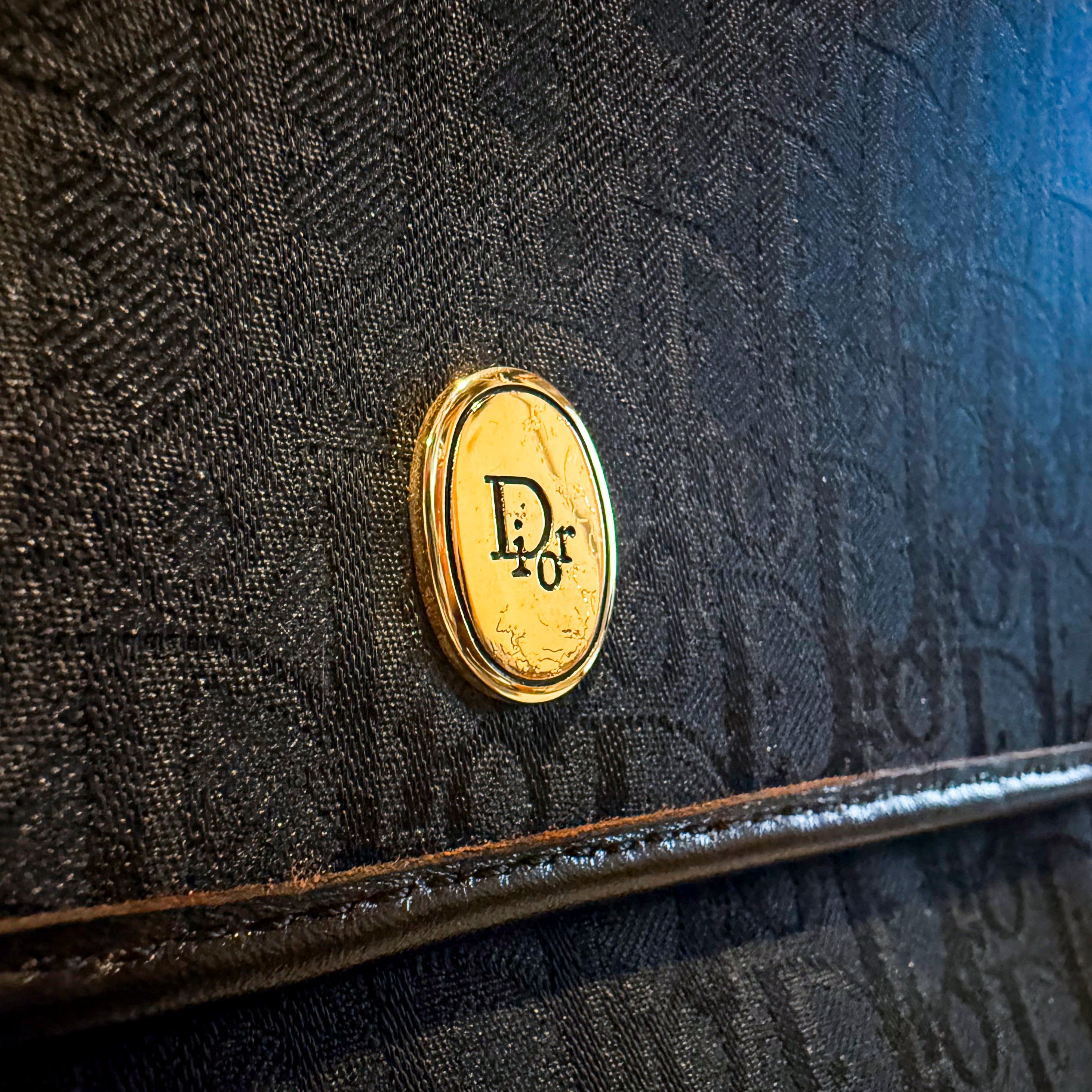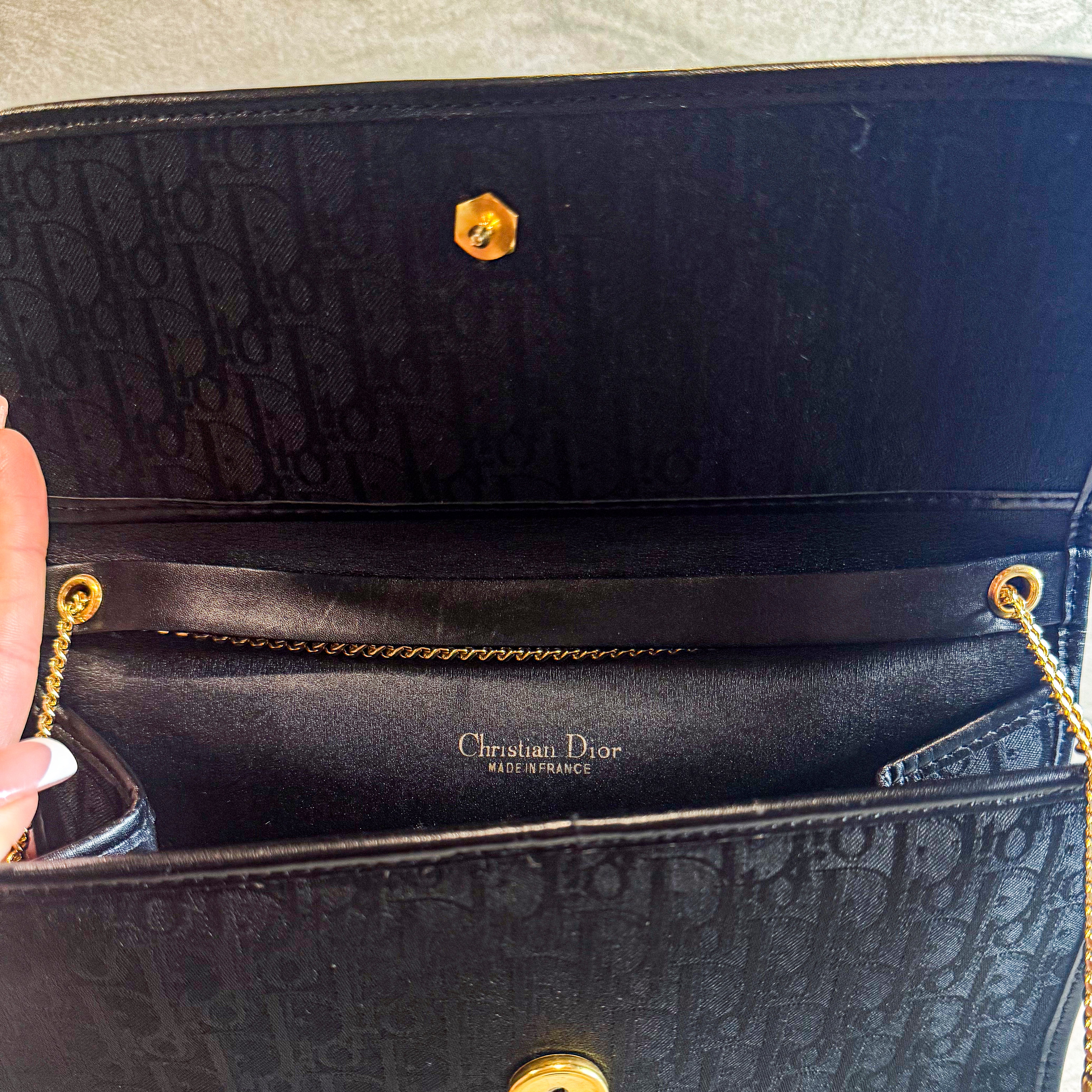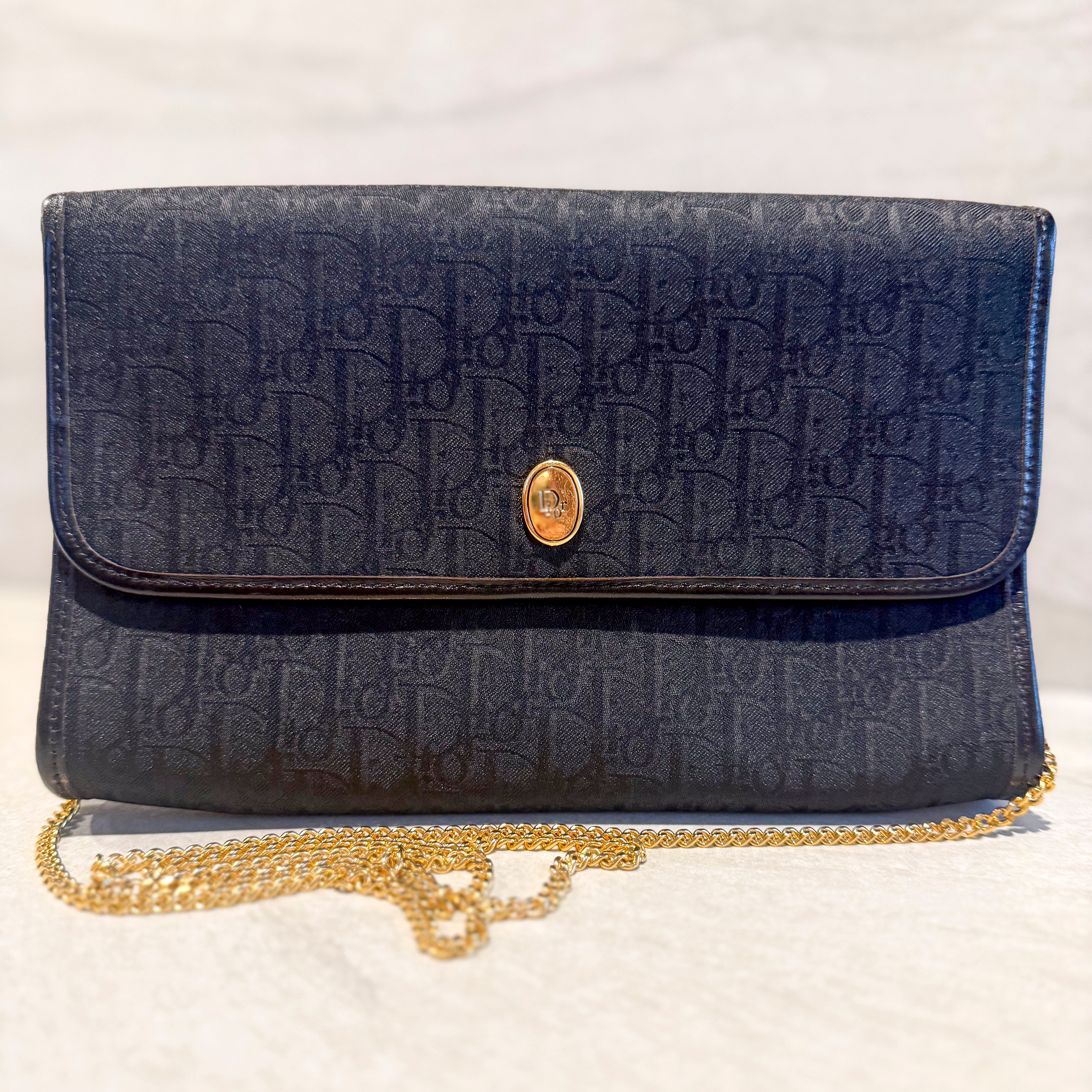 Vintage Christian Dior shoulder bag in the iconic Oblique canvas with gold chain strap detail.