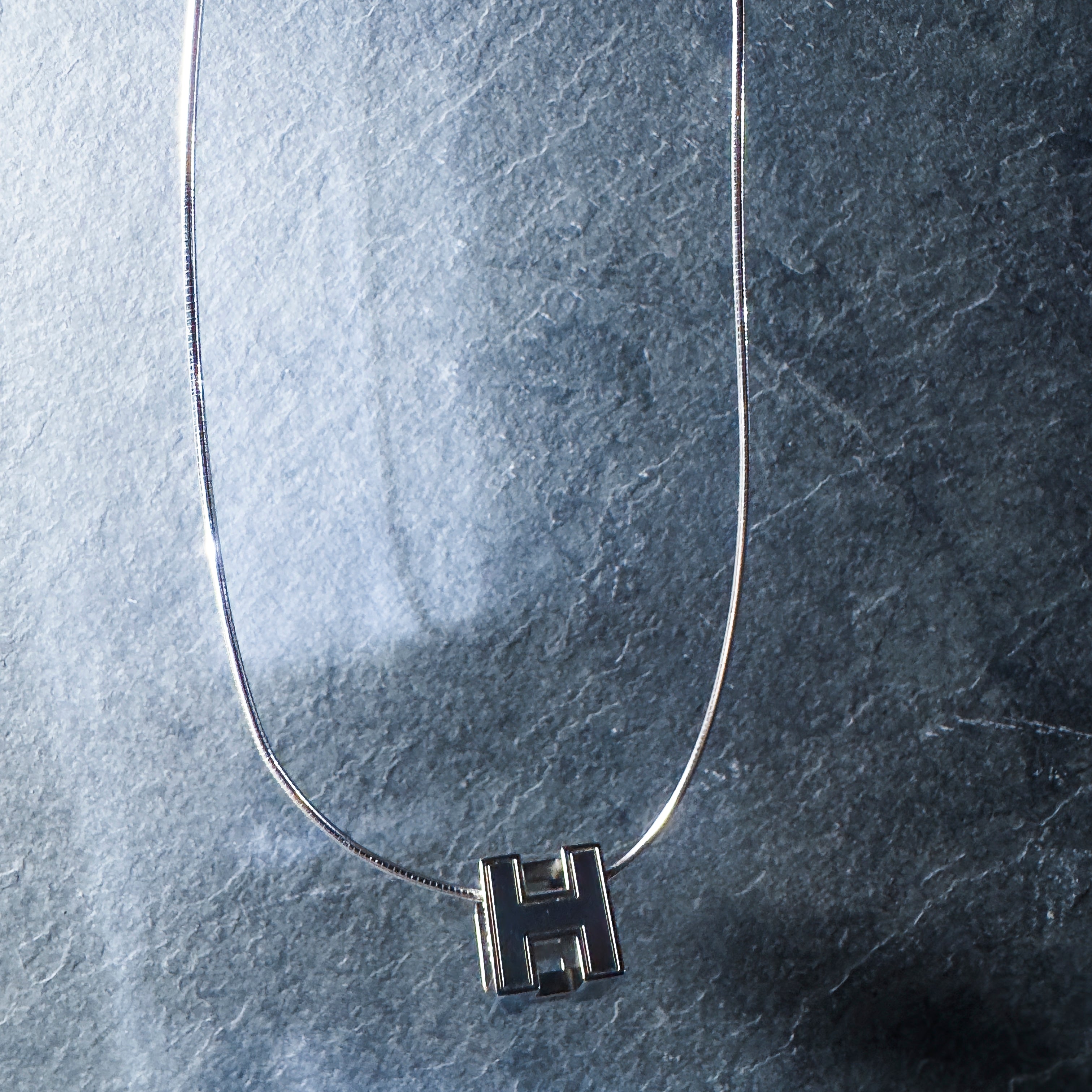 Authentic Hermès Pop H choker necklace featuring the house’s iconic H pendant in silver-tone metal with black enamel detailing. A sleek, modern design that embodies Hermès’ signature elegance and refined minimalism.