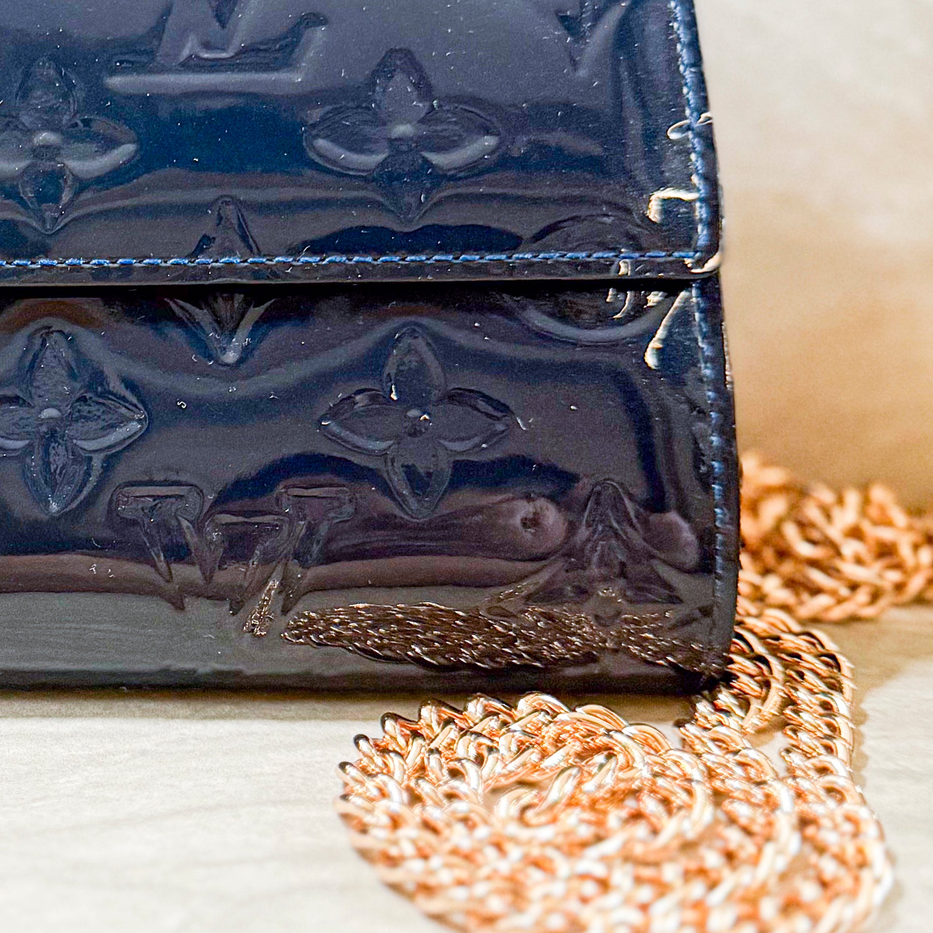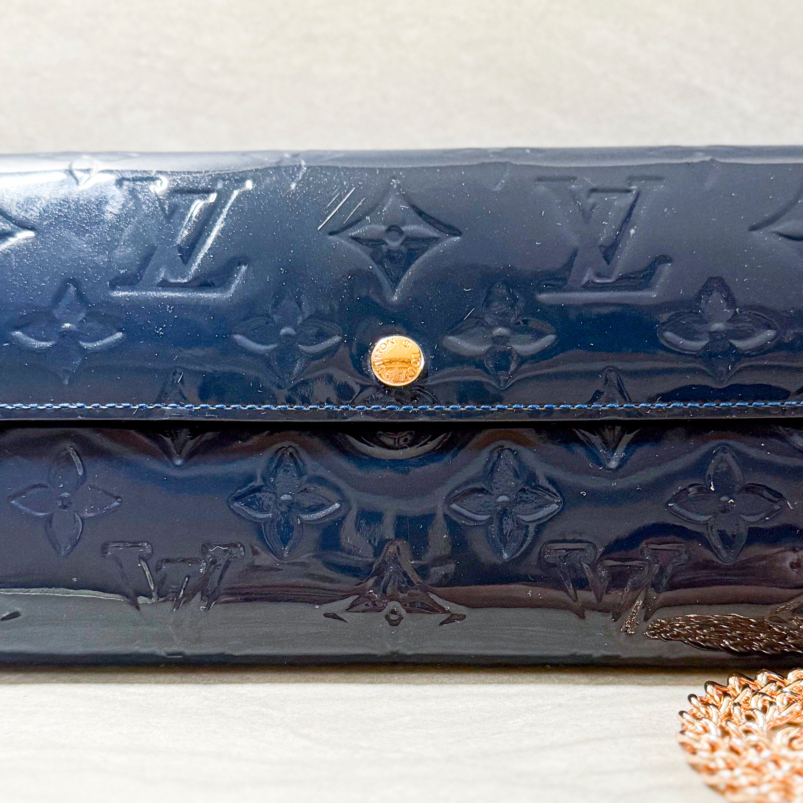 Louis Vuitton Sarah wallet. Vernis patent leather with embossed Monogram pattern. Amarante colorway. Snap closure, multiple card slots, bill compartment, zipped coin pocket. Comes with COA