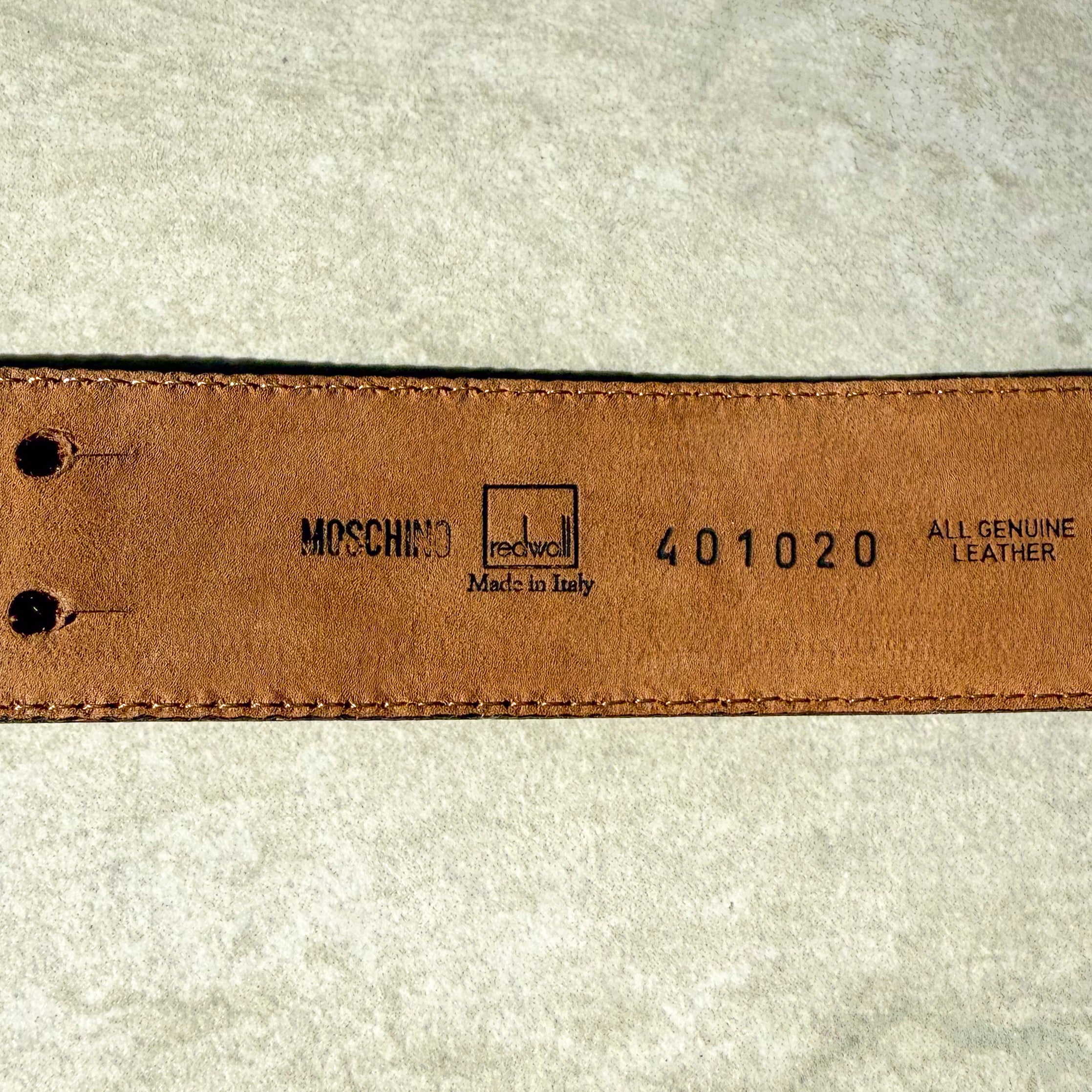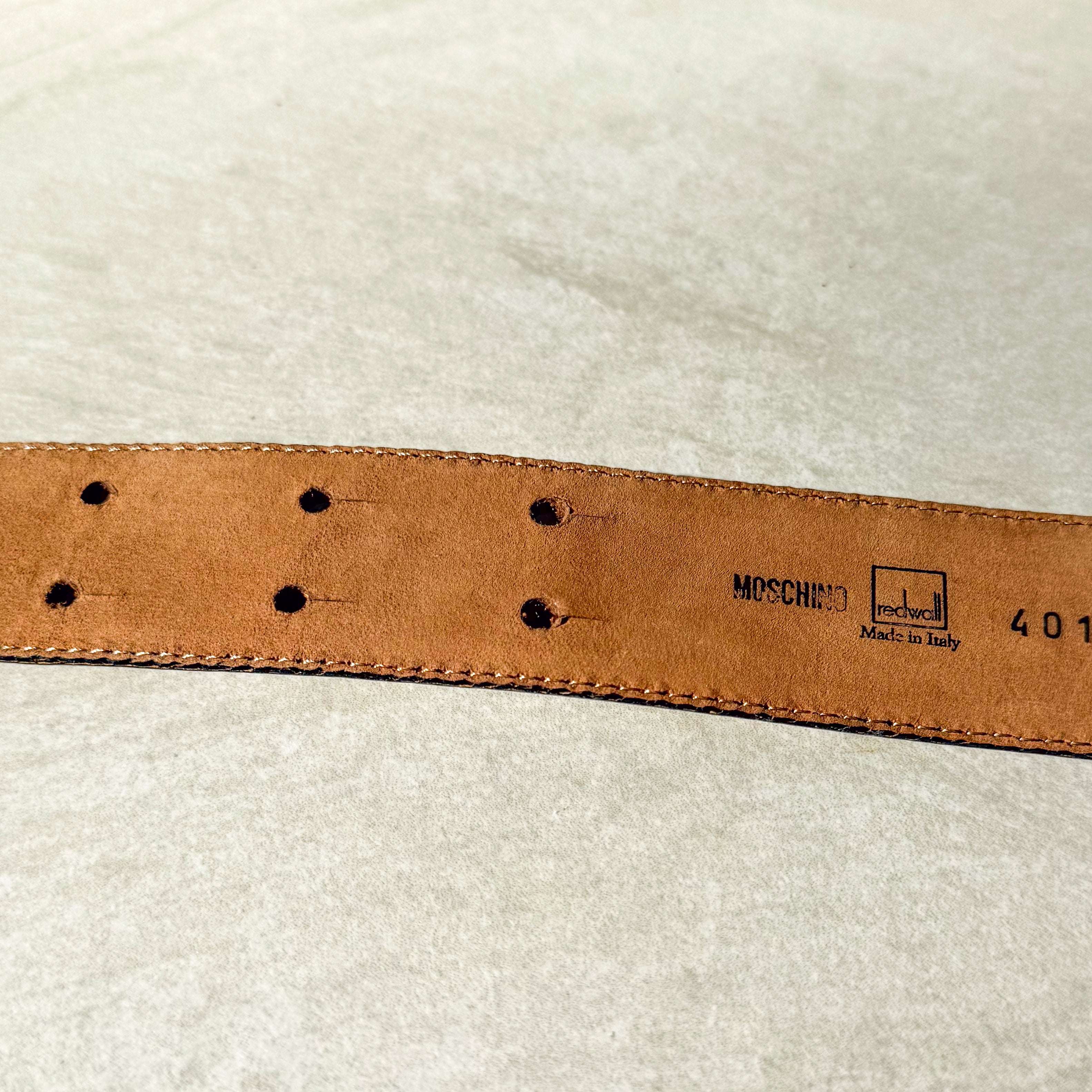 Moschino Leather Belt$250.00Add to CartSize 40 (X-Small).Light scratches to hardware.Authenticated.Collection: