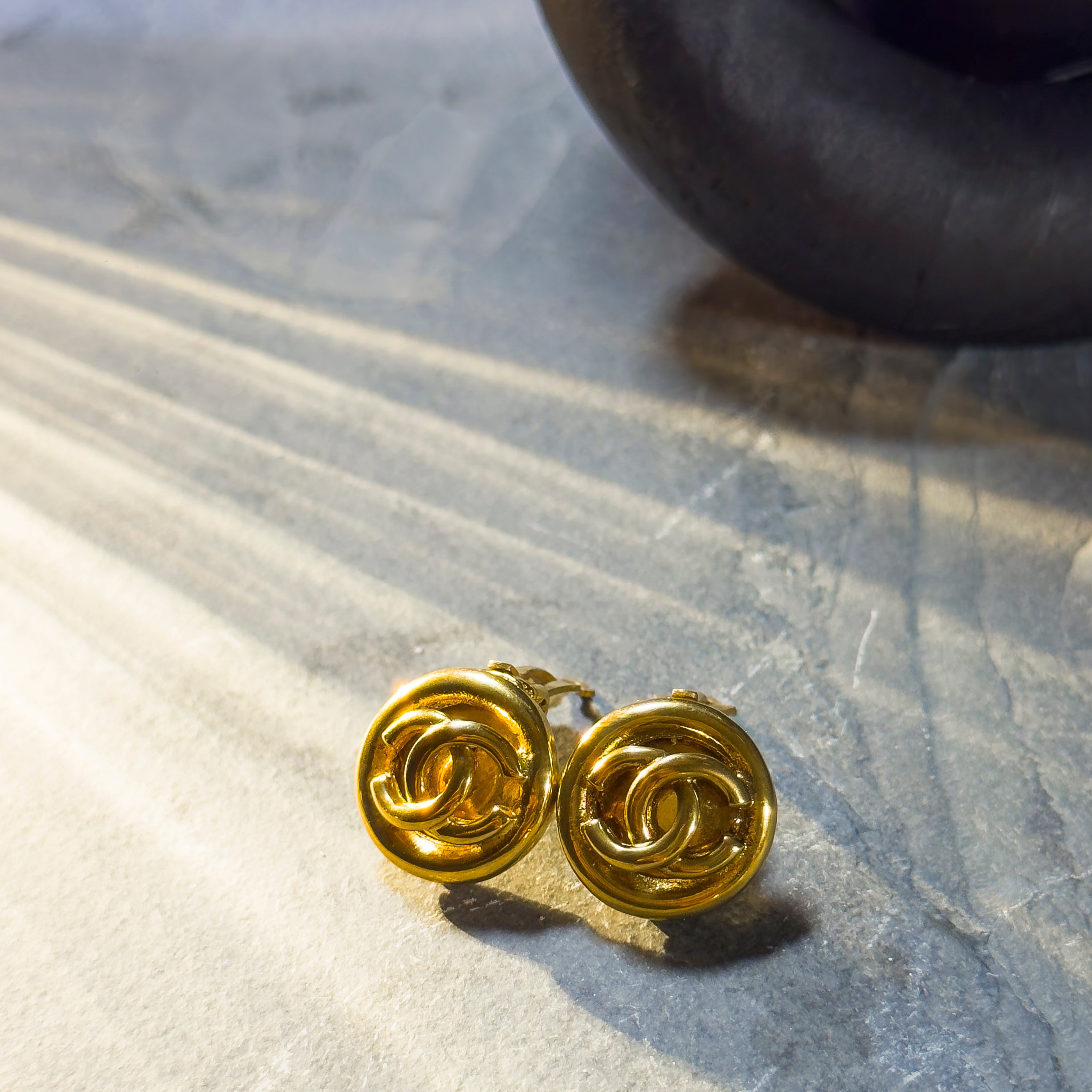 Vintage Chanel Black CC Button Earrings